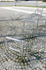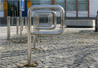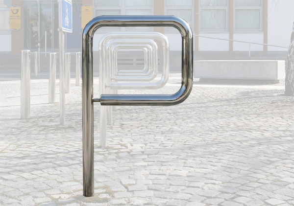 Bicycle stand is finished in brushed stainless steel and anchored directly into the ground. Its minimalsit design follows the basic design idea of "invisible" urban design elements, unobstrusive objects able to adapt to changing image of the city.