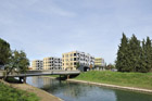 side of the channel. Facades in printed plaster envelop three