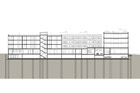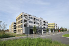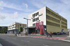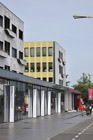 an office building, a business volume to the north and a series