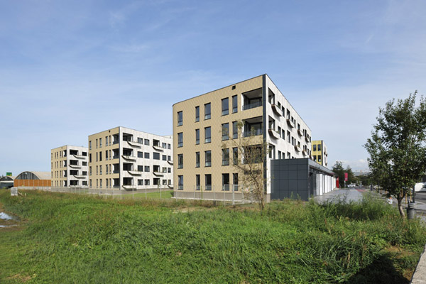 zones. Complex comprises three apartment buildings and and