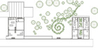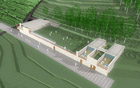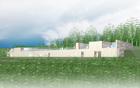 The vineyards lie in a beautiful valley that starts at the edge of the woods on the north and levels out smoothly between two gentle slopes. The cellar is positioned into the heart of the valley and the vineyard, its form echoes the abstract linear composition of the vineyard's slopes. A program line follows the technological line of wine production, a physical line of the front facade cuts into the soil. The route to the cellar first leads through a wood, at its end, the first view of the vineyard opens; it continues through another grove, with the view of the building opening at its end. This level of the slope offers a magnificent view of the plains as far as Croatia, a scenic pathway leads across the hill to the building. Inside the building, an introductional route leads the visitior through the wine production process to the cellar and a degustation area with a terrace, located on the upper floor. The staircases to the east lead to a roof garden and two secluded apartments at the far end of the building.